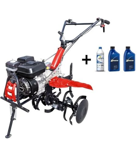 La motozappa Dunsch DU42212 - 97W21 è un attrezzo maneggevole e allo stesso tempo solido, ideale per terreni di media grandezza. Capace di fresare anche la terra piú dura e difficile da lavorare, dotata di un potente motore a scoppio 4 tempi con 212 cc di cilindrata e 5,5 Cv di potenza, con un'utonomia di quasi 2 ore di lavoro con il pieno di benzina. La zappa a motore Dunsh è munita di 2 marce avanti e 1 retro, una robusta scatola del cambio in ghisa ed una trasmissione professionale con ingranaggi in ghisa. Le stegole regolabili sia in altezza che lateralmente rendono agevole il lavoro della fresatura. La motozappa Dunsch è provvista di fresa a 6 stelle da 33 cm di diametro per una ampiezza di lavoro di 102 cm compreso di dischi laterali ed una profondità massima 33 cm. Una macchina semplice da manovrare grazie all'impugnatura ergonomica regolabile in altezza e comandi sul manico. In Omaggio: 1 litro di benzina alchilata Aspen + 1 LT di olio motore SAE30 + 1 LT di olio cambio SAE90 ...