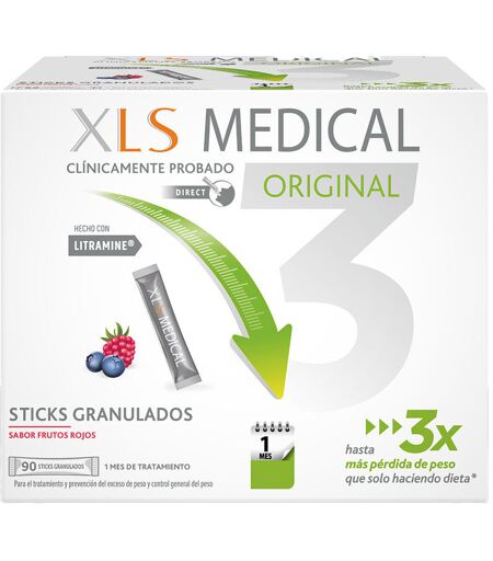 XLS MEDICAL ORIGINAL Trappola per grassi in bastoncini granulati. Controllo del peso e perdita di peso. Prodotto di parafarmacia. Sapori: Frutti rossi ...