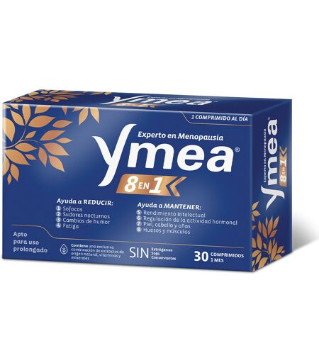 YMEA MENOPAUSA 8 in 1. La salute delle donne. Green beauty: Ingredienti naturali. Prodotto di parafarmacia. Formato: Compresse. Allergeni alimentari: Senza soia ...