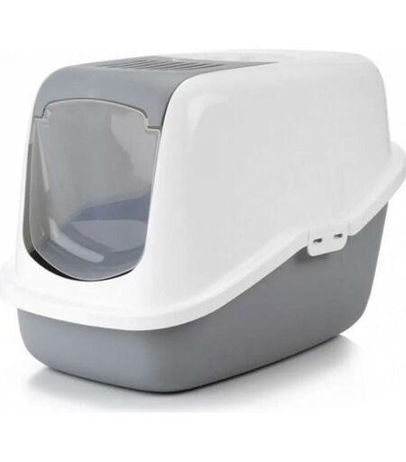 Cassetta per lettiera coperta per gatti nidificatori. Vassoio igienico per gatti dal design ergonomico, con bordo rialzato e frontale basculante, pulizia facile e veloce, con filtro a carboni attivi. 56 x 39 x 38,5 cm Grigio Con coperchio incernierato per una facile pulizia Porta basculante in plastica trasparente ...