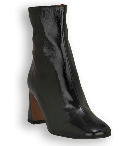 stivaletto jamia con tacco medio alto 7 cm e punta arrotondata. tronchetto con la cerniera nella parte interna e la fodera in pelle. angel alarcon scarpe prodotte in spagna. colore: vernice nero. ...