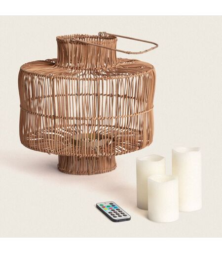 ILUZZIA Lampada da Tavolo Rattan Masái Colore Naturale con Telecomando