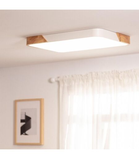 ILUZZIA Plafoniera led 30W Rettangolare Legno e Metallo 625x425 mm cct Selezionabile Semi-Dari Bianco