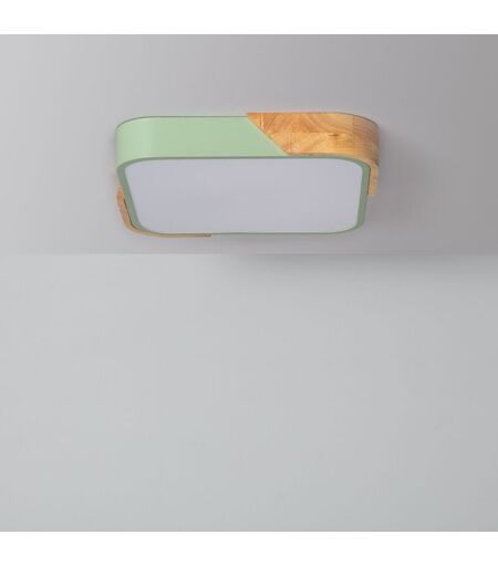 ILUZZIA Plafoniera led 18W Quadrata Legno 325x325 mm cct Selezionabile Semi-Dari Verde Celadon