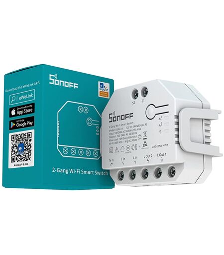 SONOFF Interruttore Wi-Fi Contatore di Energia Compatibile con Interruttore Convenzionale Dual R3 15A Bianco
