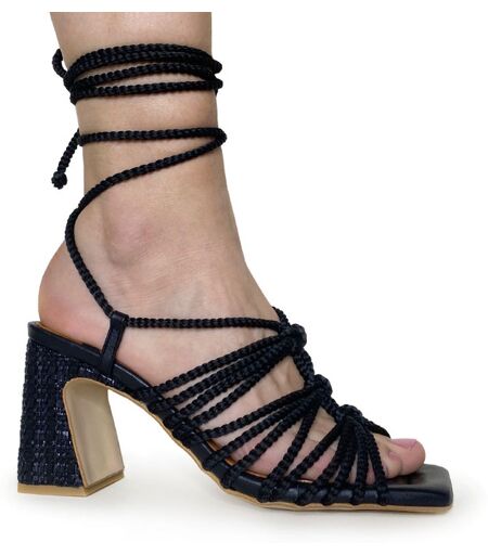 sandalo da donna con la tomaia intrecciata e lacci nella caviglia tacco medio alto 5 cm. sandalo molto comodo per un uso quotidiano. scarpe prodotte in spagna. colore: nero. ...