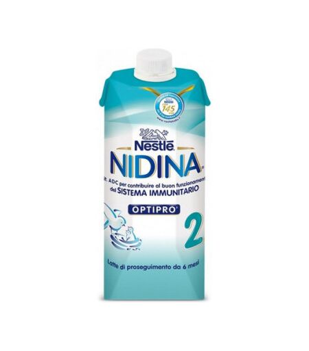 Nestle' Nidina 2 Latte di proseguimento Liquido, nel pratico formato da 3 confezioni con 6 brick da 500ml, e' indicato per l'alimentazione del lattante a partire da 6 mesi di vita, in assenza totale o parziale del latte materno. Nestle' ha sviluppato un processo esclusivo per intervenire sulla qualita' e quantita' delle proteine del latte e renderle adeguate alle esigenze del bambino e con Nidina 2 e' garantito un apporto bilanciato. Ricco di vitamine A e C per contribuire al funzionamento del sistema immunitario, e' formulato appositamente per far parte di un'alimentazione diversificata, da iniziare secondo le indicazione del pediatra. Non deve essere utilizzato in sostituzione del latte materno nei primi 6 mesi di vita. In assenza del latte materno e' importante utilizzare il latte di proseguimento fino ad un anno di eta'. Ingredienti di Nestle' Nidina 2 Latte di proseguimento Liquido: Acqua, latte scremato, maltodestrina, oli vegetali (oleina di palma, olio di colza, olio di cocco, olio di girasole), lattosio, siero di latte parzialmente demineralizzato e frazionato in polvere, minerali (calcio, potassio, sodio, magnesio, ferro, zinco, rame, iodio, manganese, selenio), emulsionante lecitine (di soia),vitamine (C, niacina, E, acido pantotenico, A, tiammina, B6, acido folico, K, biotina, D). ...
