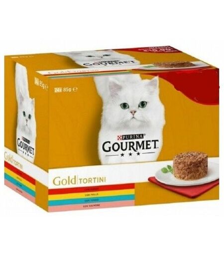Purina Cat Gourmet Gold Tortini Manzo, Tonno, Pollo, Salmone Cat Gourmet Gold Tortini Manzo, Tonno, Pollo, Salmone - Confezione Da 24x85 Gr -