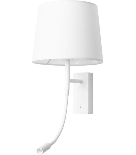 FORLIGHT Janet - Aplique de Pared para Dormitorio E27 Luz de Lectura LED Blanco Cálido 3000K. Aluminio Blanco Pantalla de Textil