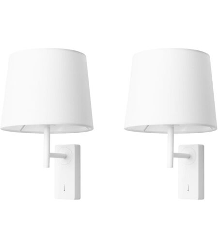Aura - 2 Apliques de Pared para Dormitorio E27 con Interruptor on/off en la Base. Color Blanco con Pantalla de Textil ...