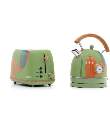 CAPRIZZE Pack Tostapane Kaito con Doppia Fessura Extra Ampia e Bollitore Nara Colore Verde Floreale Opaco con Design Retro Vintage