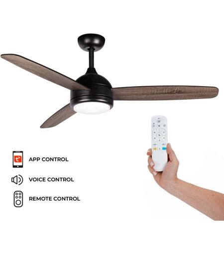 Il ventilatore da soffitto Siroco Black DC di Kekai si unisce al mondo dell'ecologia grazie al suo motore DC che riduce il consumo energetico del 70%. Il design ultraleggero a 3 pale lo rende un ventilatore estremamente silenzioso, che si aggiunge perfettamente all'arredamento della vostra casa. Le 6 velocità e la possibilità di cambiare il senso di rotazione delle pale consentono di climatizzare ambienti di 13m²-25m² in due modalità possibili, invernale o estiva. Indipendentemente dalla funzione di ventilatore, il modello Siroco DC è dotato di una piastra luminosa a LED CCT 18W con intensità regolabile e tre temperature di luce tra cui scegliere (calda, fredda o neutra) per creare atmosfere diverse. Potrete controllare le sue funzioni e programmare il timer con il telecomando o collegandolo con Alexa, Google o Siri attraverso l'app TUYA SMART per una maggiore comodità. Caratteristiche: - Dimensioni: Ø132x40 cm - Materiale della lama: compensato - Colore: Nero e legno - Tipo di ...