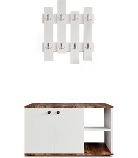 CATTER HOUSE - Armadio Multiuso - Scarpiera Kavala Bianco-Marrone 90x32x53 cm con 2 Porte, 2 Ripiani e Appendiabiti
