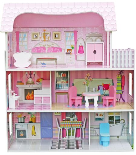 OUTDOOR TOYS - Casa delle Bambole in Legno Alba 62x27x70 cm con Luci led e 8 Mobili
