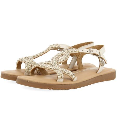 Sandali in pelle con decorazioni di perline.Hanno una soletta imbottita in pelle e una chiusura regolabile alla caviglia.Composizione:- Pelle naturale.- Tomaia combinata in pelle e poliestere.- Suola flessibile in TPR.- Fodera in pelle conciata in concerie con certificazione sostenibile Leather Working Group. ...