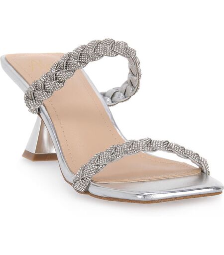 sandalo a tacco alto con cinturini intrecciati borchiati. soletta imbottita per un maggiore comfort. l'altezza del tacco e di 6 cm. queste le premesse di alma en pena riesce a creare la propria personalita utilizzando materiali di qualita con dett ...