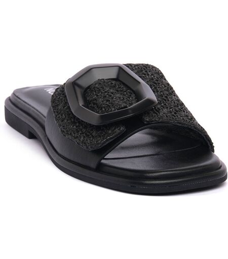 ciabattina noa harmon fly con la tomaia in rafia e similpelle. il tocco elegante e fresco del tuo look estivo. realizzato in modo artigianale. sottopiede morbido in pelle e suola esterna in gomma. colore: nero. ...
