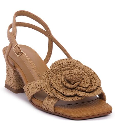 sandali con tacco noa harmon abril con la tomaia in rafia foderata in pelle. il tocco elegante e fresco del tuo look estivo. tacco alto 6 5 cm. realizzato in modo artigianale. sottopiede morbido in pelle e suola esterna in gomma. colore: cuoio. ...
