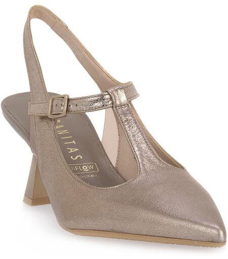 slingback hispanitas in pelle elegante e anche molto confortevole grazie all'incorporazione della tecnologia triflow a tripla ammortizzazione. altezza: 6 cm. fodera in pelle e suola in poliuretano termoplastico. colore: desert. colore: oro antico. ...