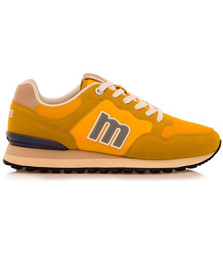 Sneakers Joggo Track da uomo in color senape di Mtng.Queste sneakers si distinguono per il loro design sportivo e il colore vibrante.Combinano dettagli in tessuto e pelle scamosciata, con accenti blu navy e beige, insieme al logo M del marchio sul lato.Aggiungi un tocco di colore al tuo look con Joggo Track di Mtng! ...