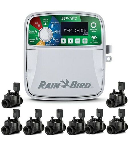 RAIN BIRD - Programmatore Irrigazione Elettrico Automatico ESP-TM2 8 zone Indoor + 8 Elettrovalvola 100HV 24V 1''