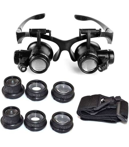 DEBUNS Offerta speciale - Lenti d'ingrandimento con fascia per la testa, lenti d'ingrandimento con luce LED, ingrandimenti 10x, 15x, 20x e 25x, da