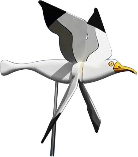 TRIMEC Mulino a vento da giardino in resina, gabbiano bianco con ali rotanti, banderuola a forma di animale, vento 3D Spinner, Decorazione per prato