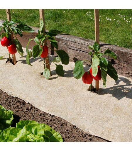 Una soluzione di pacciamatura naturale per un giardino o un orto. Di facile manutenzione. La miscela di canapa e lino sotto forma di rotoli o quadrati, consente un posizionamento facile e veloce. La sua origine vegetale al 100% gli conferisce tutti i vantaggi della pacciamatura: evita il diserbo, risparmio d'acqua, aumento della temperatura, terreno pulito, favorisce la vita nel terreno. Pur essendo biodegradabile al 100%, può essere utilizzato in AGRICOLTURA BIOLOGICA. < br />Caratteristiche tecniche: Dimensioni: 0,75 x 5 m Colore: beige Materiale: 70% canapa, 30% lino Peso: 500 g/m² ; ...