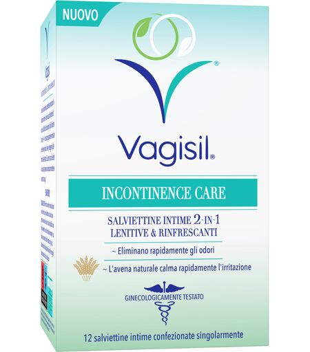 vagisil incontinence care salviettine intime 2in1 lenitive & rinfrescanti 12 pezzi