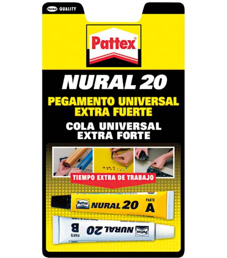 Nural- 20 White Transparent - 22 ml (2 Tubi 11+11 ml) - Pattex Nural 20 è un adesivo trasparente per riparazioni, de alta resistenza e de uso universale, che permette di lavorare in più tempo de. - Campo di applicazione: Pattex Nural 20 incolla, ripara e riempie de in modo permanente. - Aderisce a vetro, vetro, fibra di vetro, legno, truciolato, porcellana, ceramica, marmo, pietra, metalli, sughero, cartone, tessuti e feltro, plastica (PVC, metacrilato, bachelite, policarbonato, poliammide, formica, poliuretano e polistirolo espanso). - Non adatto a polietilene, polipropilene e ptfe. ...