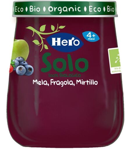 Hero Group Spa Hero Solo Omogeneizzato Mela Fragola Mirtillo Biologici, 120 g