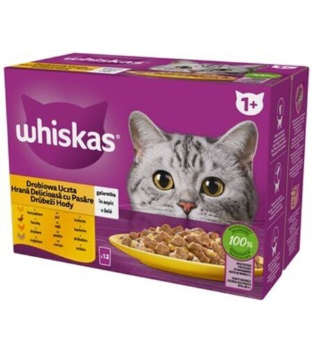 Whiskas Poultry Feast 1+ - Gelatina con pollo, anatra e tacchino 1,02 kg (12x85 g)