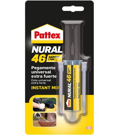 Pattex nural 46 2117155. adesivo bicomponente universale per riparazioni in formato siringa, che consente un incollaggio molto rapido, estremo e duraturo su un'ampia gamma di materiali. ...