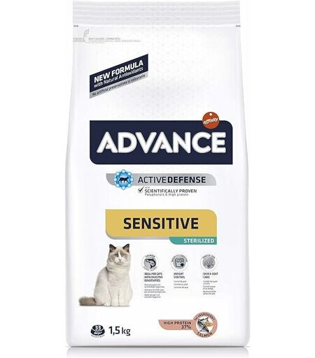 Alimento completo ed equilibrato specialmente indicato per gatti sterilizzati. Affinity Advance Sterilizzato Sensitive al Salmone aiuta a prevenire l'obesità nei gatti sterilizzati grazie ad un elevato contenuto di fibra che aumenta la sazietà e un alto contenuto di proteine che aiutano a mantenere la massa muscolare. Affinity Advance Sterilizzato Sensitive al Salmone diminuisce, inoltre, il rischio di problemi urinari aumentando il livello di sodio ed evitando la formazione di calcoli urinari. Composizione Salmone (18%), mais, proteine di salmone disidratato, proteine del grano, orzo (8%), proteine animali idrolizzate, fibra vegetale, polpa di barbabietola, grasso animale, lievito, sale, cloruro di potassio, inulina, Proteine plasma, polifenoli naturali. Formato 1,5 kg Formato: 1,5 kg Formato 1,5kg ...