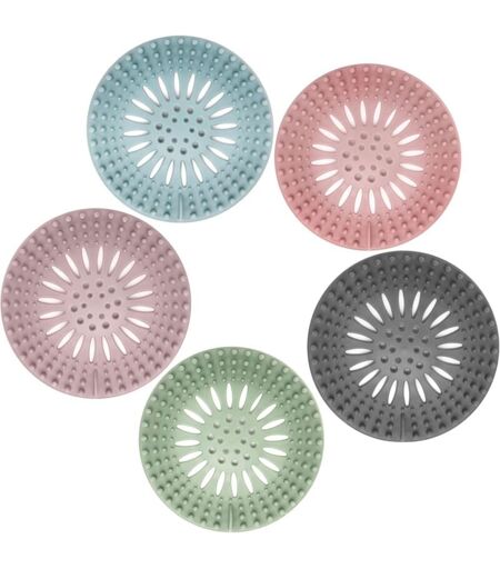 JALLERIA - Filtro per scarico lavandino bagno, copri scarico doccia, raccogli capelli, diversi colori per vasca da bagno, doccia e lavandino, set (5