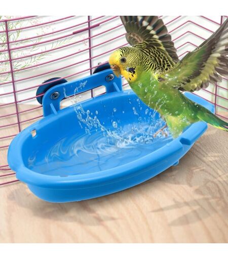 LABLANC Gabbia per bagno per uccelli, vasche per uccelli, piccoli pappagalli, accessori per vasca da bagno sospesi per parrocchetti/canarini (blu)