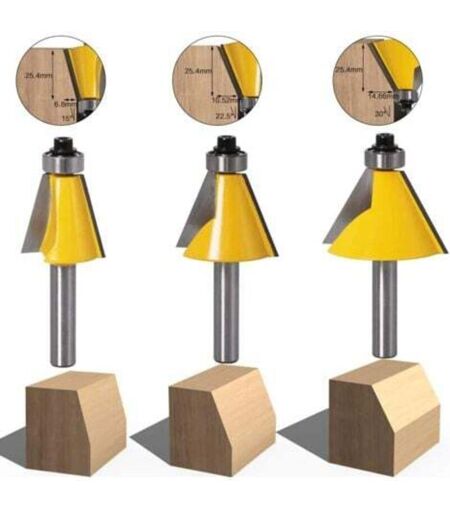 LABLANC - 3 pz 8mm tige chanfrein et chanfrein chanfrein outil de travail du bois fraise du bois (15 degrés + 22,5 degrés + 30 degrés)