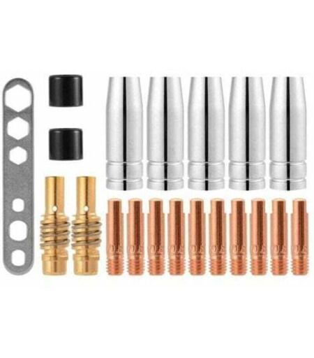 JALLERIA 20 punte di contatto per ugelli di saldatura mig/mag 15AK, supporto per connettore gas M6 0,8 x 25 mm (10 contatti, 5 ugelli, 2 spine, 2 isolanti, 1