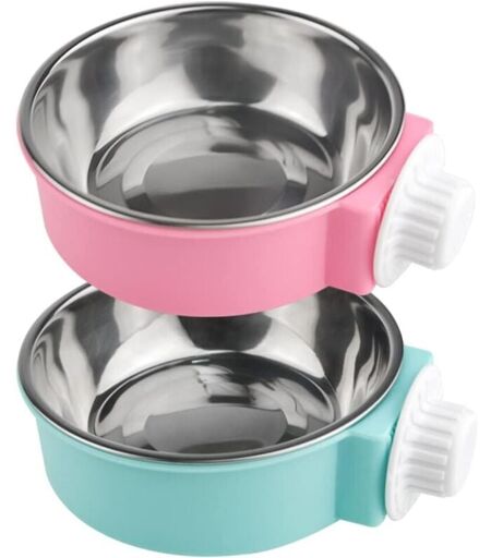GABRIELLE Set di 2 ciotole rimovibili in acciaio inox per cibo e acqua, ideali per gatti, cuccioli, uccelli, ratti e furetti (rosa e blu)