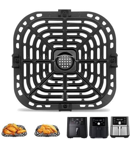 Piastra per friggitrice ad aria: questa piastra sostitutiva per friggitrice ad aria è realizzata in acciaio inossidabile per uso alimentare. Senza BPA, atossica e insapore, conforme agli standard FDA. La scelta migliore per una cucina sana e sicura. Compatibilità: questa griglia per friggitrice ad aria misura 23,1 x 24,1 x 0,25 cm. Si adatta perfettamente alla friggitrice ad aria Instant Pot Vortex Plus 6QTXL (6 in 1), alla friggitrice ad aria Instant Pot Vortex 6QT XL (4 in 1) e alla friggitrice ad aria Instant Pot Vortex 5,7QT (4 in 1). Non compatibile con la friggitrice ad aria Instant Pot Vortex Plus 6QT ClearCook e la friggitrice ad aria Instant Vortex Plus 6QT con tecnologia Odor Erase (6 in 1). Design raffinato: il vassoio di ricambio per friggitrice ad aria è caratterizzato da un design a flusso d'aria, che riscalda il cibo in modo più uniforme e delizioso. È facile da rimuovere dal cestello e lavare in lavastoviglie tramite la maniglia centrale. 4 paraurti in gomma proteggono ...