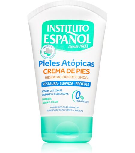 Instituto Español Atopic Skin, 100 ml, Creme per piedi unisex, La crema Instituto Español Atopic Skin garantisce ai tuoi piedi una cura perfetta. Caratteristiche: ha un effetto rigenerante rimargina la pelle screpolata Composizione: prodotto vegano Modo d’uso: Applicare sui piedi e massaggiare delicatamente. ...
