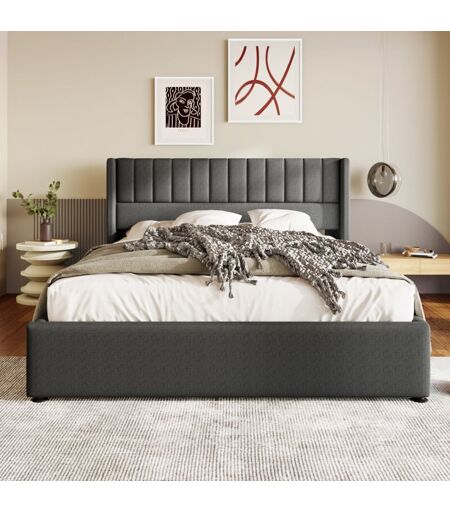 OKWISH Letto imbottito letto contenitore letto idraulico (lino grigio 140x200 cm senza materasso), letto con rete a doghe in metallo