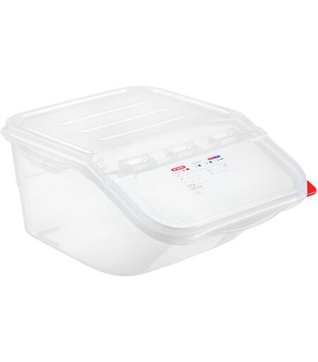 Contenitore universale GN 2/3 di facile accesso grazie al sistema FIFO (first in first out). Ideale per la conservazione di alimenti secchi (noci, pasta, riso e molto altro). Una volta impilati, tutti i coperchi dei contenitori possono essere aperti. Idoneo a HACCP grazie alle clip con codice colore. Finestra trasparente con etichetta scrivibile sulla parte anteriore. Lavabile in lavastoviglie. ...