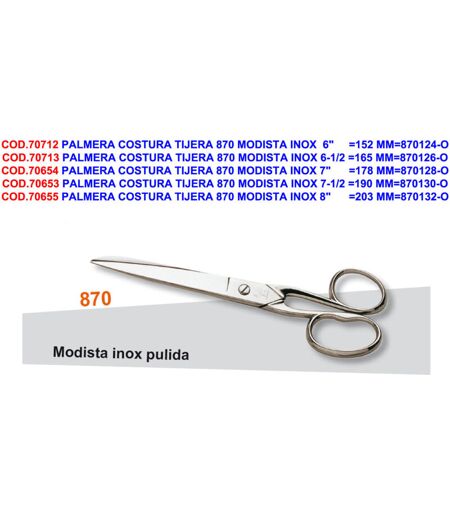 Le forbici Palmera Costura 870 Modista sono ideali per sarte e hobbisti. Con un design ergonomico e lame in acciaio inossidabile da 8 pollici (203 mm), offrono precisione e durata. La loro finitura elegante e la funzionalità li rendono uno strumento essenziale per qualsiasi progetto di cucito, garantendo tagli puliti ed efficienti. ...