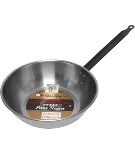 Padella fonda con manico 'Linea PATA NEGRA' di Garcima, per induzione in ferro spazzolato , spessore speciale, diam. 32cm
