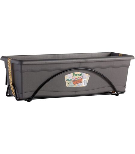 PLASTIKEN Fioriera con sottovaso integrato 60x24cm + supporto in metallo. colore antracite.