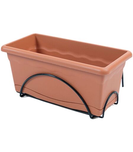 PLASTIKEN Fioriera con sottovaso integrato 40x24cm + supporto in metallo, colore terracotta.