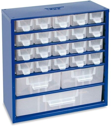 P il modulo in metallo impilabile ha 20 cassetti piccoli, 2 medi e 1 grande, oltre ai rispettivi separatori, questo conferisce al modulo una capacità di immgazzinamento molto grande e può essere usato per qualsiasi tipo di utilizzo. p inoltre, il modulo è fornito di supporti per il fissaggio al muro che gli conferiscono maggiore sicurezza e un'opzione in più per il consumatore. ...