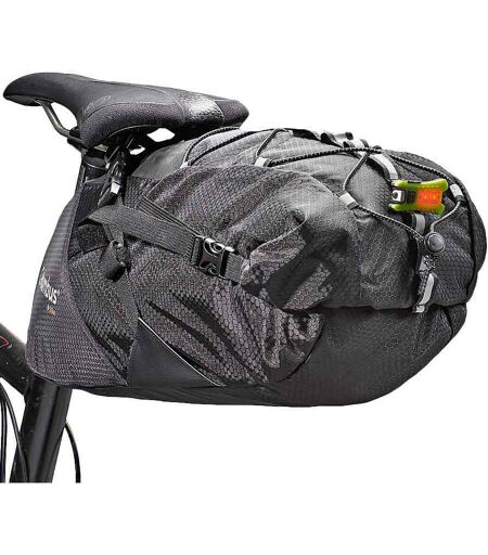 Borsa per fissaggio al sedile della bicicletta. Leggera e con capacità regolabile fino a 18l grazie alla chiusura per arrotolamento e alle cinghie di compressione. Doppio fissaggio rinforzato al sellino e al tubo. Cordone elastico per fissare materiale allesterno della borsa. Ideale per guadagnare spazio nella bici durante lunghe uscite. Elementi reflettanti e punti di fissaggio per luce posteriore. Caratteristiche: - Materiale leggero e resistente allacqua. - Compartimento principale con doppia chiusura. - Cinghia di compressione interna. - Chiusura con arrotolamento. - Cordone elastico esterno. - Fissaggio per luce di posizione. - Loghi reflettanti. Specifiche tecniche: - Tessuto principale: Nylon Rip-stop (PU) - Peso: 0,355 kg. - Volume: 18 l. - Dimensioni: 20x20x47 cm. ...