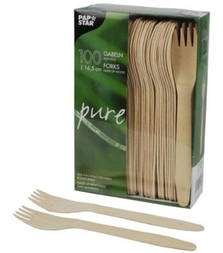 PAPSTAR 100 Gabeln Holz Pure Einweggabel Besteck Pommes Fork 16,5cm Gabel, Legno, 1-Confezione, unità -